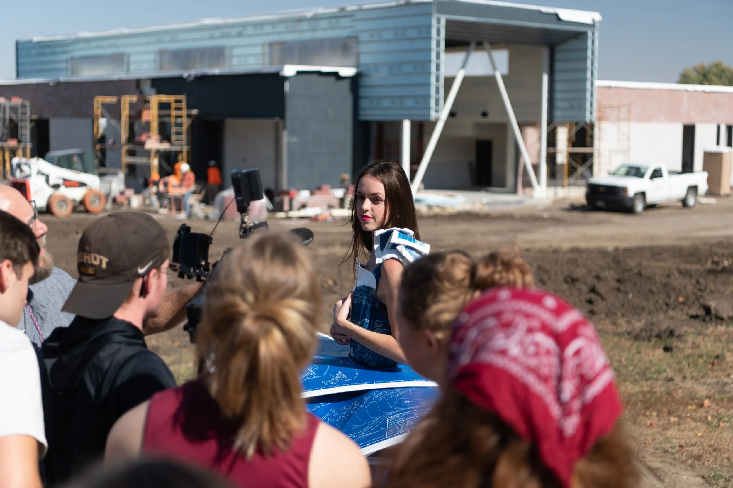 Below - Shooting video of “Blueprint For Life” in front of a construction site on campus